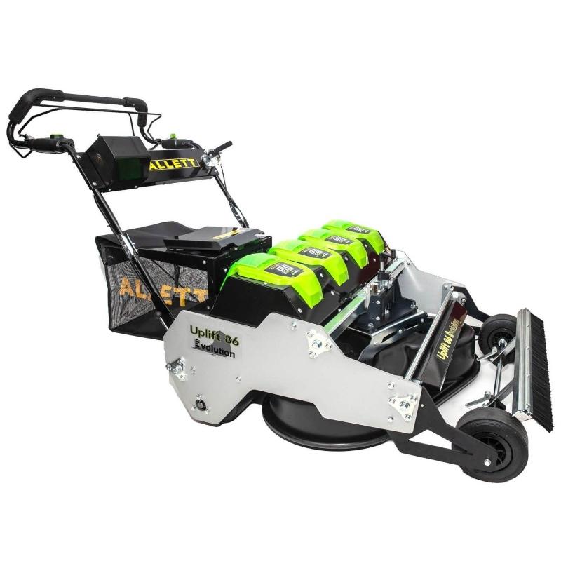 Der Allett Uplift 86 Evolution ist die neuste Ergänzung des akkubetriebenen Sortiments von Allett Evolution. Er schneidet und saugt schnell und effizient, erzeugt starke Kontraststreifen und gewährleistet eine hohe Bedienerfreundlichkeit. Der Uplift 86 Evolution wird von 4 Lithium-Ionen-Akkus mit 82 V angetrieben und verfügt über eine stufenlos einstellbare Vorwärtsgeschwindigkeit, um in schwierigen Bereichen eine optimal an den Nutzer angepasste Gehgeschwindigkeit zu ermöglichen.