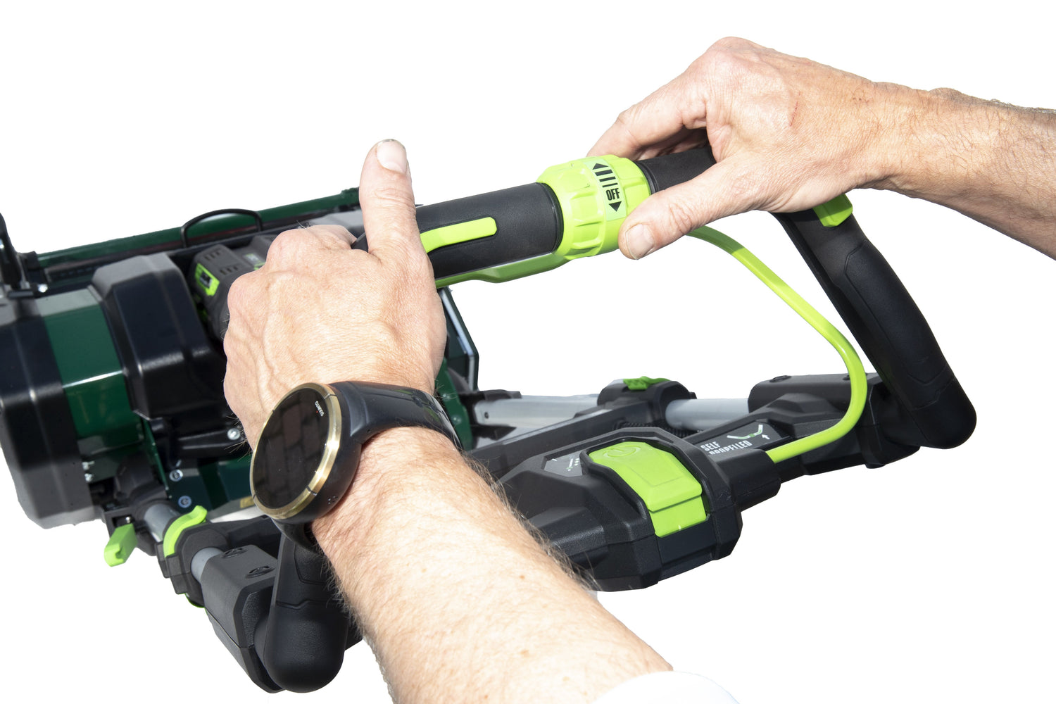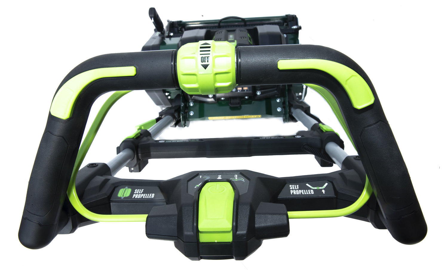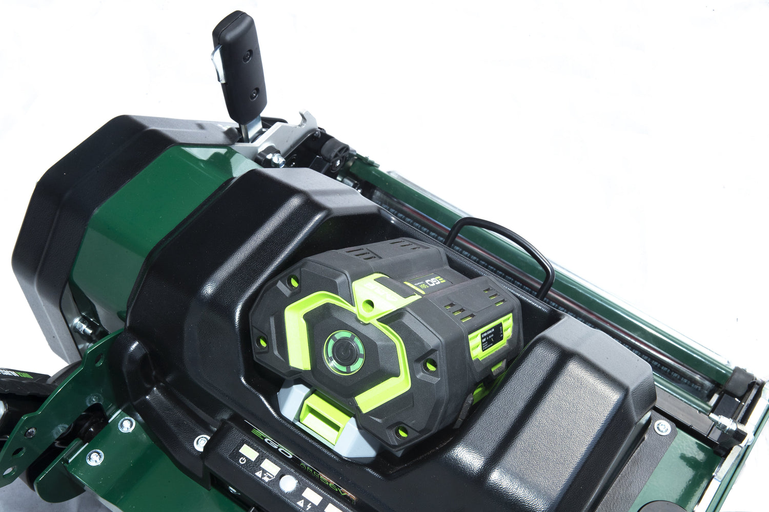 Der Mäher wird von einem EGO 56V Batteriesystem mit einzigartiger 'Keep Cool'™-Technologie angetrieben. Die Antriebsgeschwindigkeit der hinteren Walze wird durch den am Lenker montierten Geschwindigkeitsregler gesteuert und kann während des Mähens auf die optimale Fahrgeschwindigkeit eingestellt werden. Die Mäh- und Bodenbearbeitungskassetten werden von einem separaten leistungsstarken Elektromotor angetrieben, wodurch die Fahrt bei abgeschalteter Kassette ermöglicht wird.